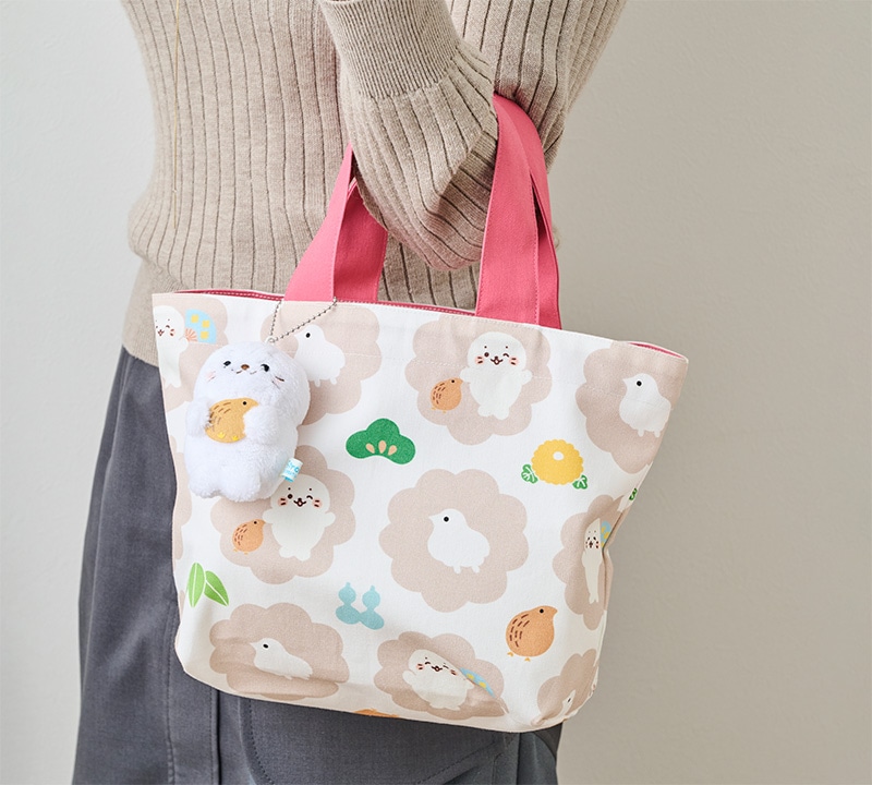 - しろたんおせち限定デザインのトートバッグと小風呂敷、マスコットキーホルダーの豪華グッズ付き!
