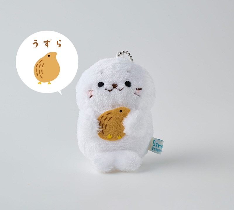 ちょこんと小さなうずらと、おすまし顔のしろたんがなんとも言えないゆるい雰囲気を醸し出しており、見ているだけでほっこり癒されるかわいさです。サイズは約8cmで、大きすぎずトートバッグにつけるのにもピッタリのサイズ感。ボールチェーンを外してぬいぐるみとしてお部屋に飾るのもおすすめです。