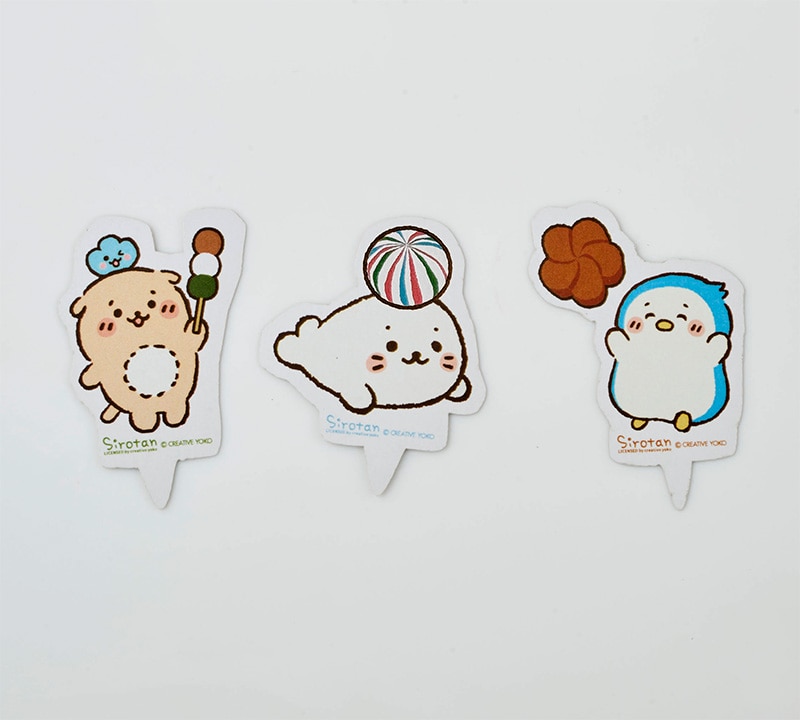 厚紙でできたオリジナルキャラクターピックと、蒲鉾に貼り付けて楽しめるオブラート状の可食イラストシートを別途付属しています。お好きな場所に配置して、自分好みのおせちにデコレーションをしていただけます。