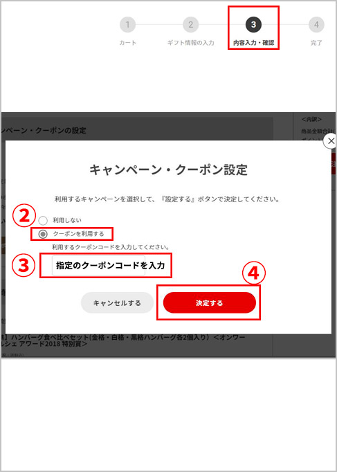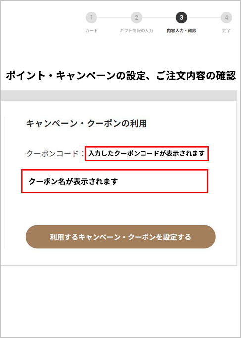 注文確定の際、ご利用クーポンが適用されているかご確認ください。